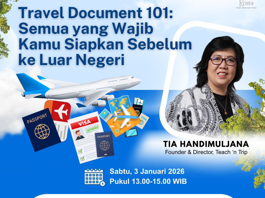 Webinar ini diselenggarakan sebagai sarana edukasi untuk memberikan pemahaman komprehensif dan praktis mengenai berbagai dokumen penting yang harus dipersiapkan sebelum melakukan perjalanan internasional. Melalui webinar ini, peserta akan dibekali pengetahuan dasar hingga teknis terkait jenis-jenis dokumen perjalanan, prosedur pengurusan, serta tips dan kesalahan umum yang perlu dihindari. Diharapkan dengan adanya kegiatan ini, peserta dapat merencanakan perjalanan ke luar negeri dengan lebih matang, percaya diri, dan terhindar dari kendala administratif, sehingga perjalanan dapat berlangsung aman, lancar, dan nyaman.